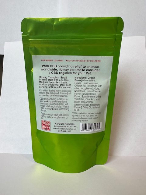 CBD Dog Treats for small to medium dogs- 30 Doggie Paws per package , each enhanced with 2.5mg of CBD with a Maple Bacon flavor.